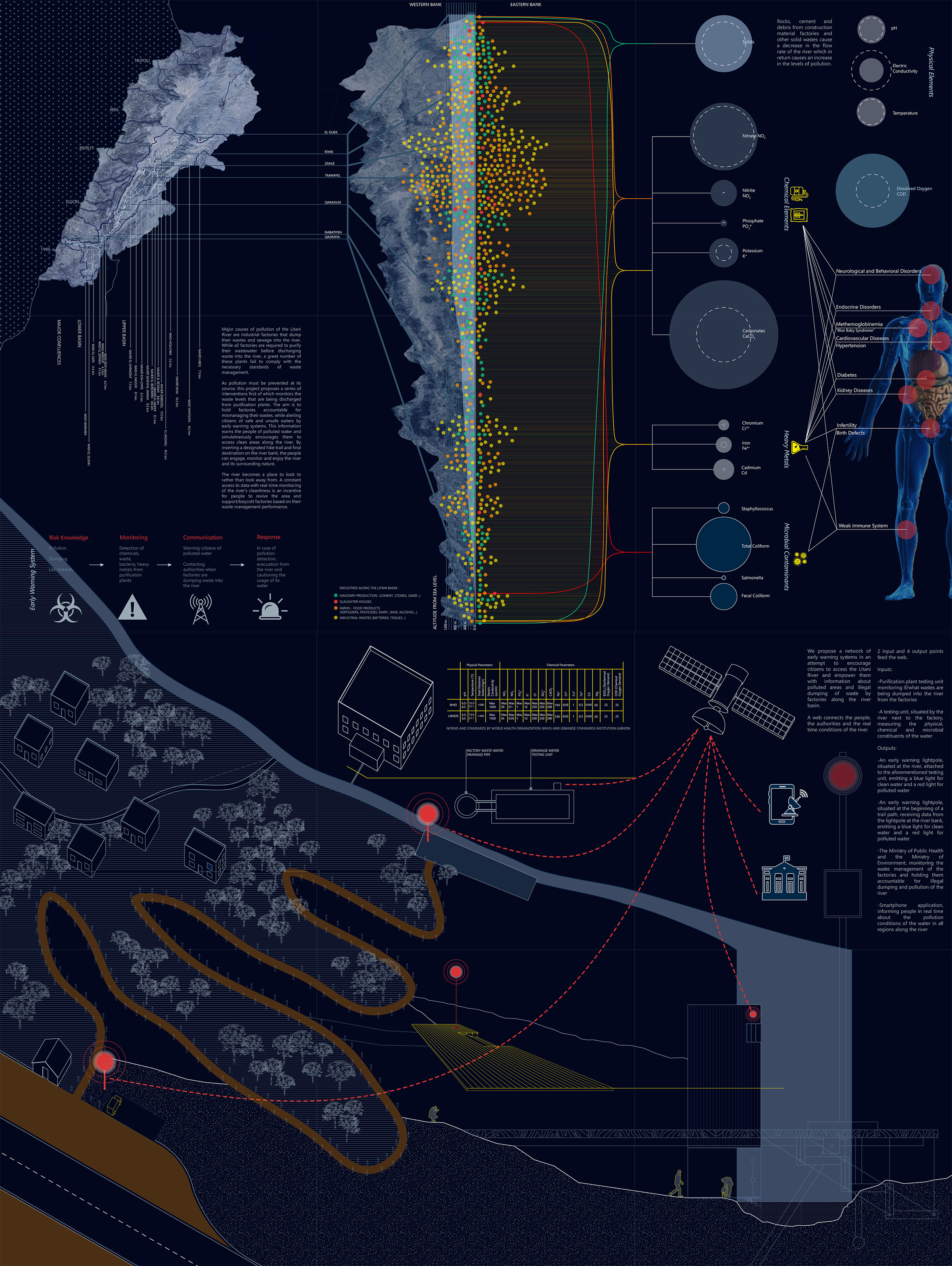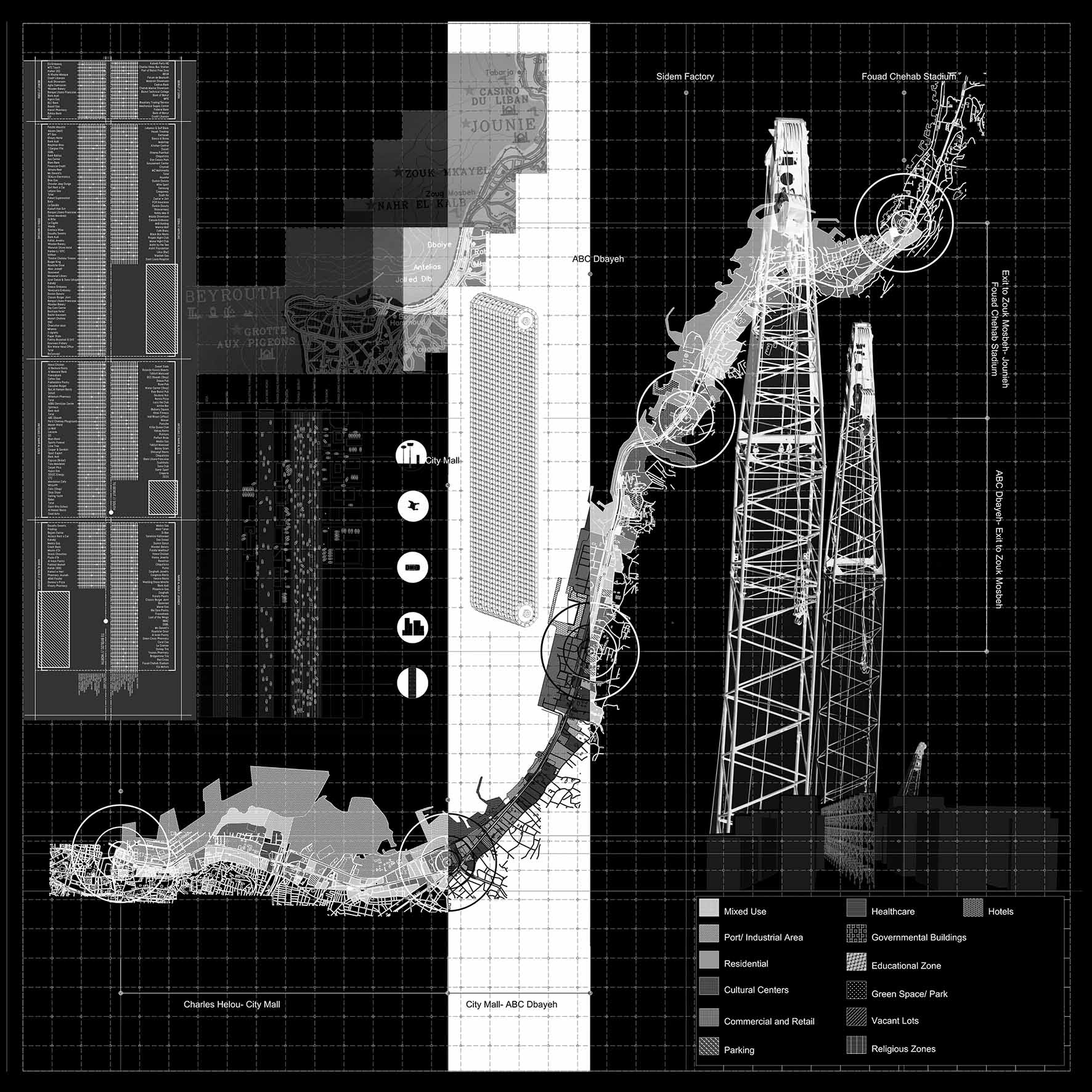 Micro Devices / Infrastructure is a course that teaches visualization and architecture diagramming as analytical methods to pursue an in-depth research on a specific local infrastructural problematic. The aim is to tackle, on a yearly basis, one infrastructural or service issue while focusing on a specific area in Lebanon. Throughout the years, the course tackled different issues of transportation, water, energy, and pollution. Through an in-depth analysis of the infrastructural system and supplemented with research on the concerned area, the students will work on creating a comprehensive catalogue of the visual research, while generating hybrid proposals, micro or macro infrastructures, that can act as operative interventions.